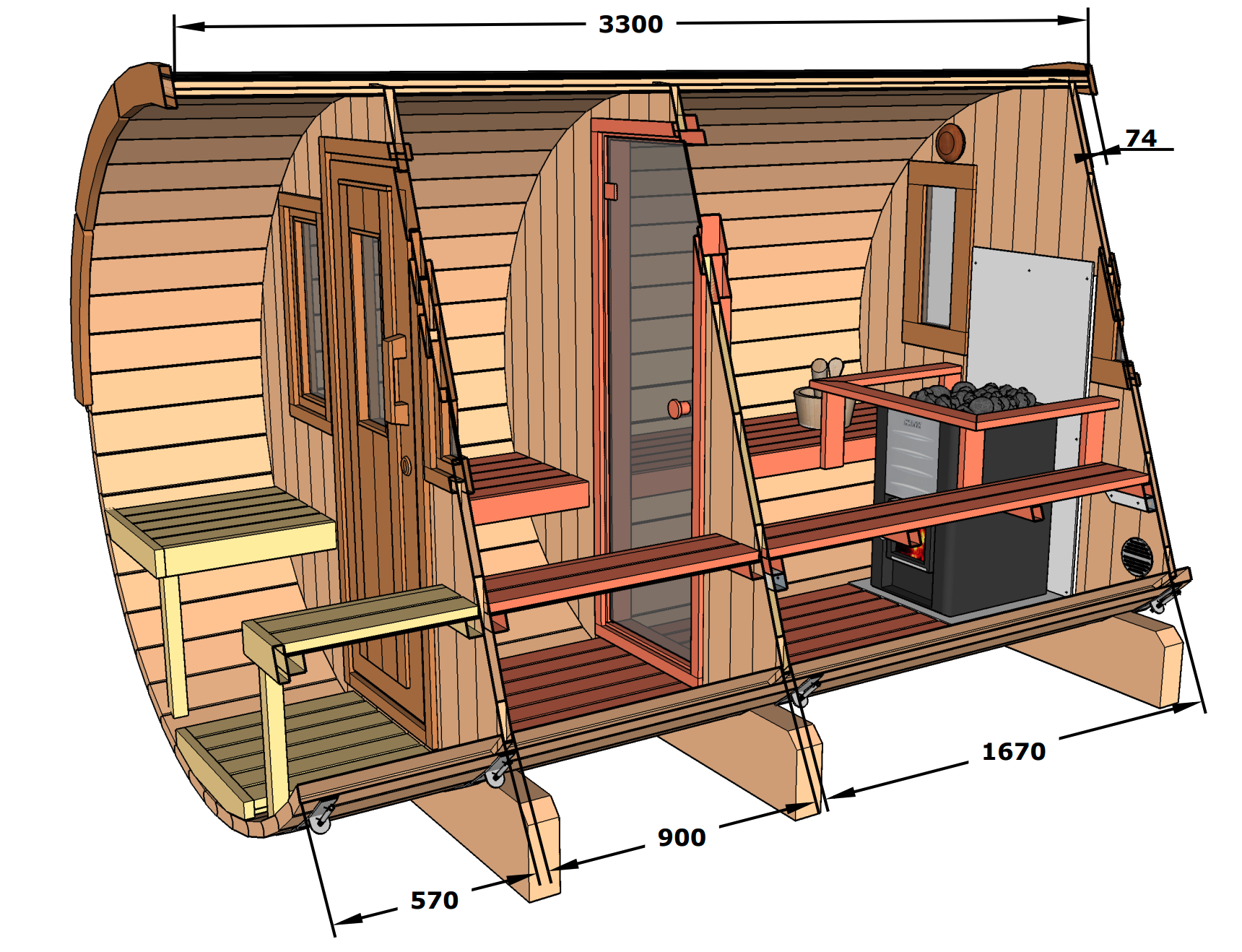 - No sauna heater included (available as optional accessory)