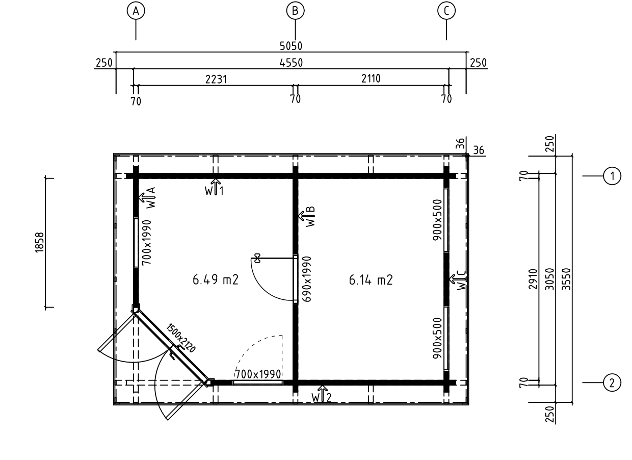 - Option for 44 mm or 70 mm thick solid wood walls
