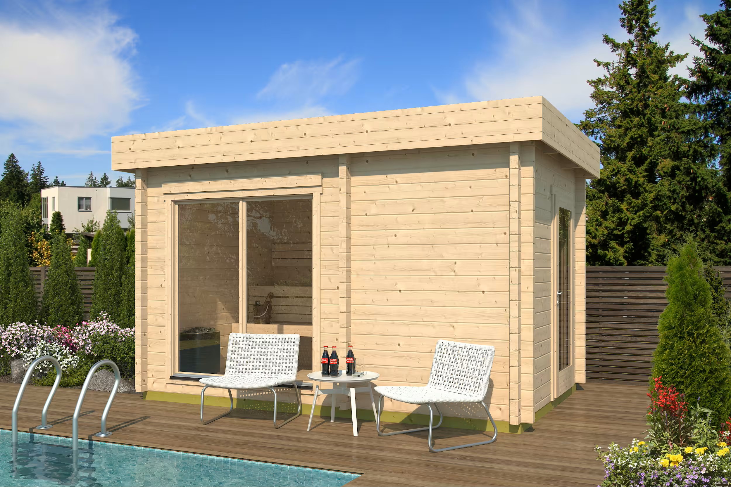 - Option to choose between 44 mm and 70 mm thick solid wood walls