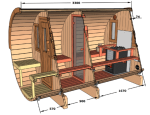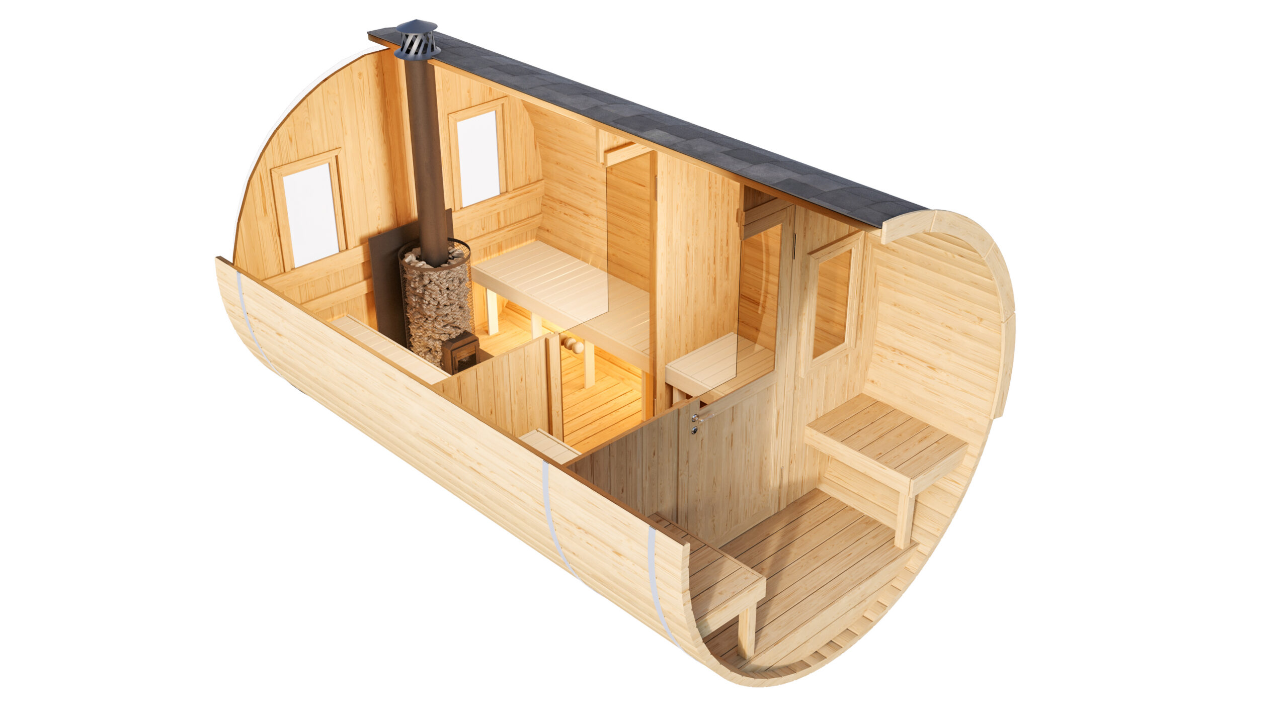 Through slow heating in an oxygen-free environment from 160 °C up to 230 °C over several hours, the wood components change. This transformation offers several advantages for our thermally treated wooden saunas: